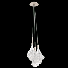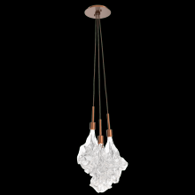 Blossom Cluster - 03 - Gilded Brass - Blossom Clear Blown Glass - Cloth Braided Cord - LED - 3000K