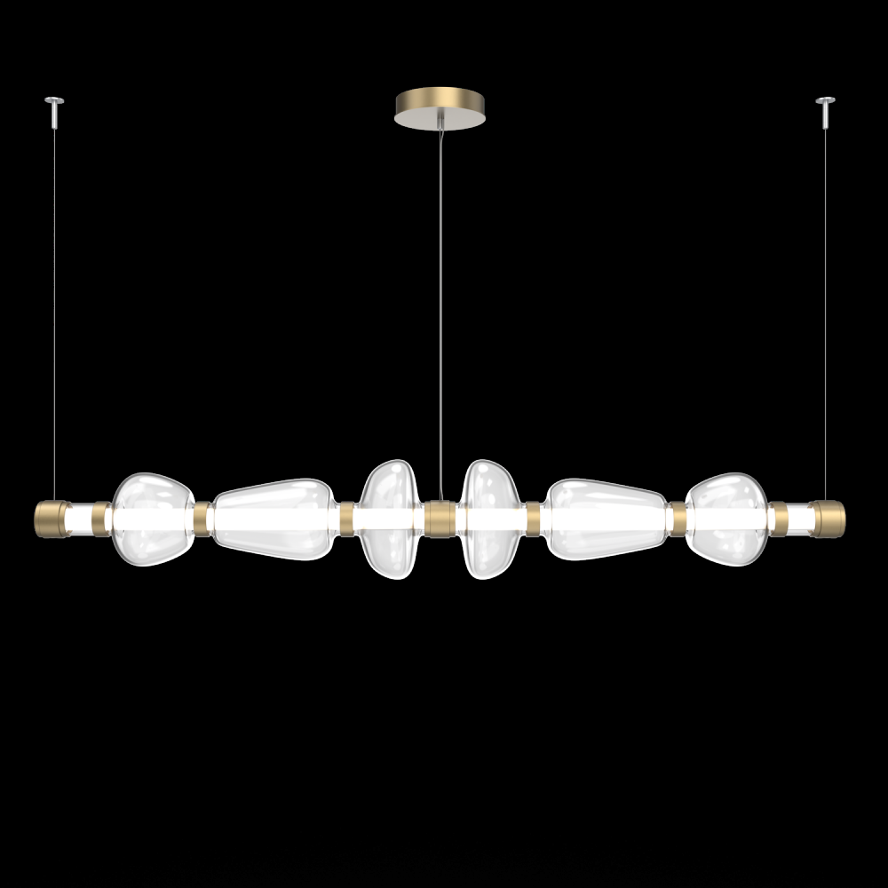 Bolla Mandrel 74 - Inch Linear - Gilded Brass - Clear Blown Glass - Stainless Cable - LED - 3000K