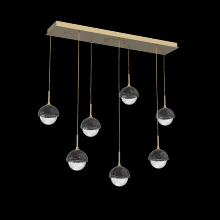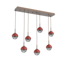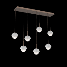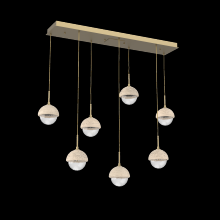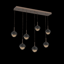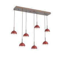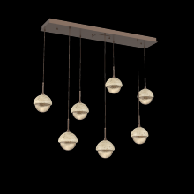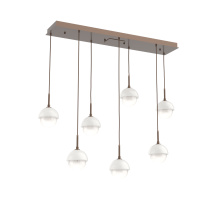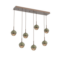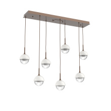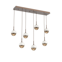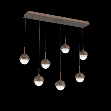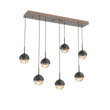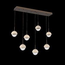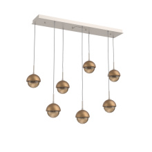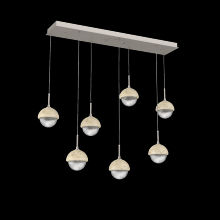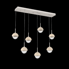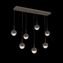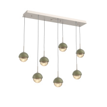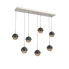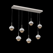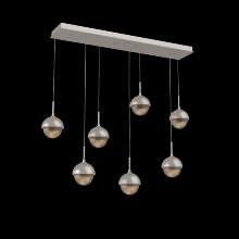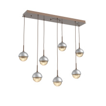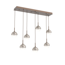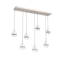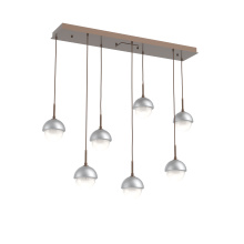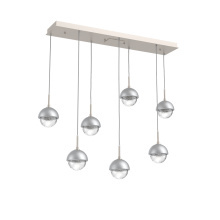 Cabochon 7pc Linear Multi-Pendant-Beige Silver-Clear Glass with Metal Shade-Cloth Braided Cord