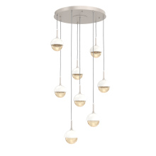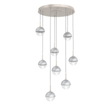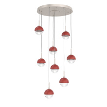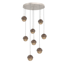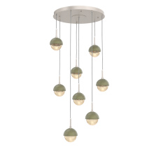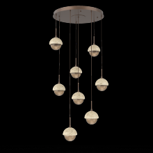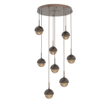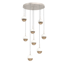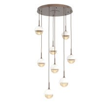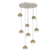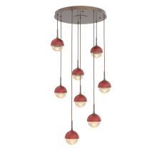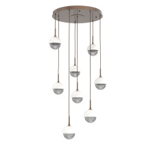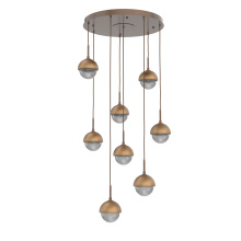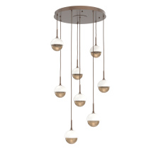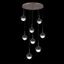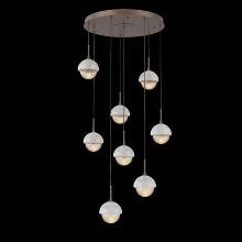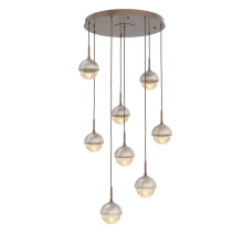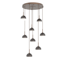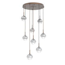 Cabochon 8pc Multi-Pendant-Burnished Bronze-Clear Glass with Metal Shade-Cloth Braided Cord