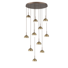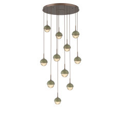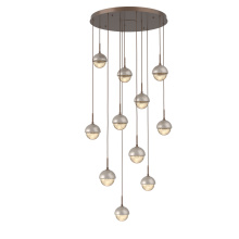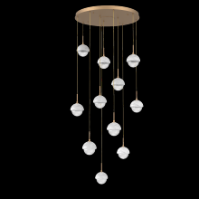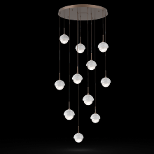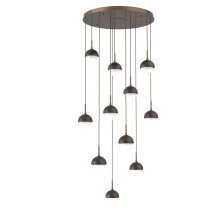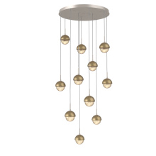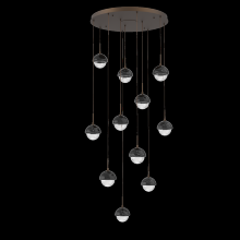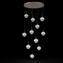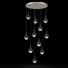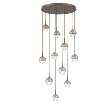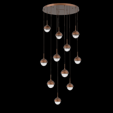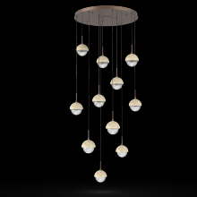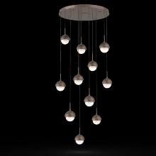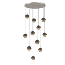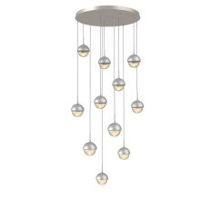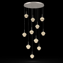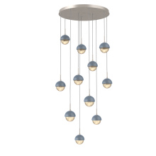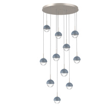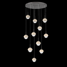 Cabochon 11pc Multi-Pendant-Beige Silver-Clear Glass with Travertine-Cloth Braided Cord-LED 3000K