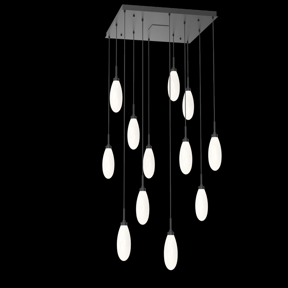 Fiori Square Multi - Port 12 Pc. - Matte Black - White Glass Lens - Cloth Braided Cord - LED - 3000K