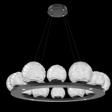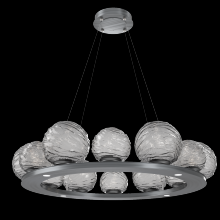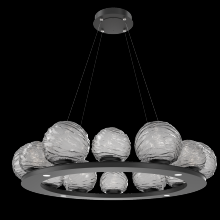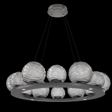 Gaia 36 - inch Platform Ring - Gilded Brass - Smoke Blown Glass - Stainless Cable - LED - 3000K