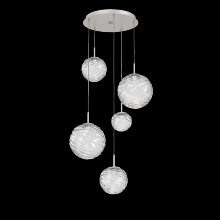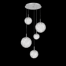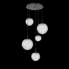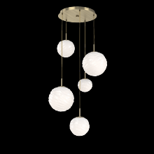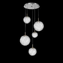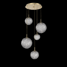 Gaia 5pc Round Multi - Pendant - Gilded Brass - Clear Blown Glass - Cloth Braided Cord - LED - 3000K