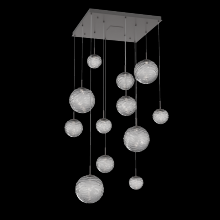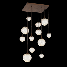 Gaia 12pc Square Multi - Pendant - Gilded Brass - Amber Blown Glass - Cloth Braided Cord - LED - 3000K