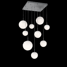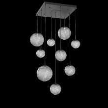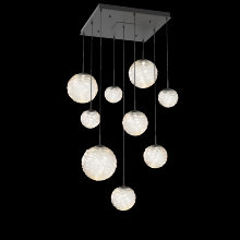Gaia 9pc Square Multi - Pendant - Gilded Brass - Amber Blown Glass - Cloth Braided Cord - LED - 3000K