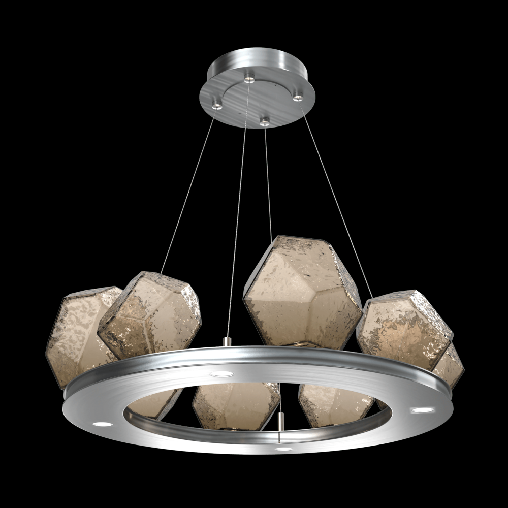 Gem Ring Chandelier - 0B - Satin Nickel (Translucent) - Bronze Blown Glass - Stainless Cable - LED - 2700K