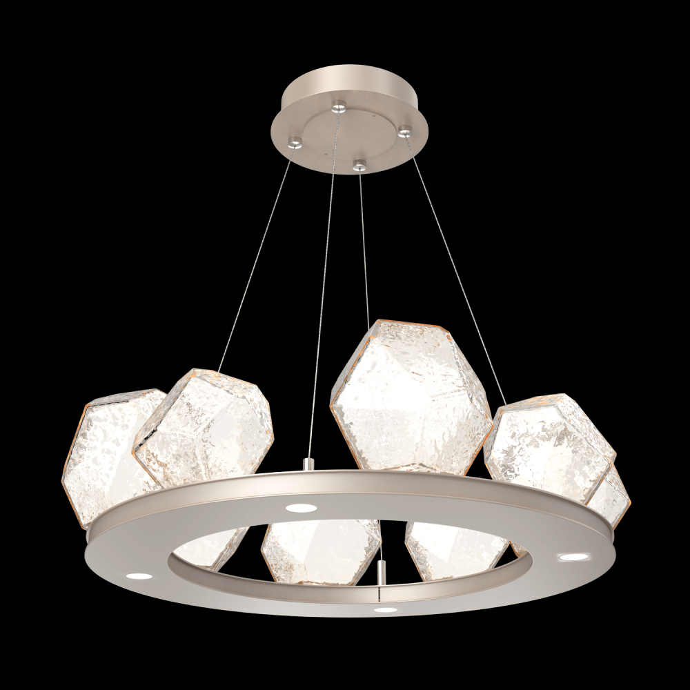 Gem Ring Chandelier - 0B - Metallic Beige Silver - Amber Blown Glass - Stainless Cable - LED - 2700K