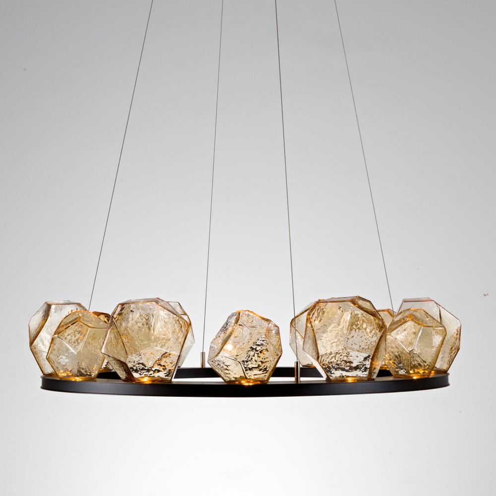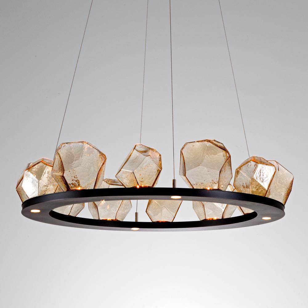 Gem Ring Chandelier - 0C - Gilded Brass - Amber Blown Glass - Stainless Cable - LED - 2700K