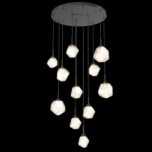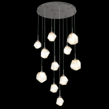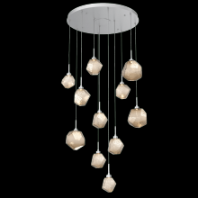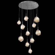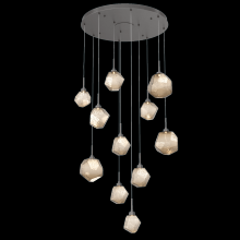 Gem Round Multi - Port - Gilded Brass - Smoke Blown Glass - Cloth Braided Cord - LED - 2700K