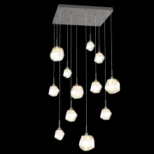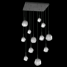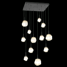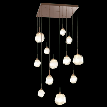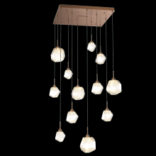 Gem Square Multi - Port - Flat Bronze - Amber Blown Glass - Cloth Braided Cord - LED - 2700K