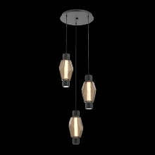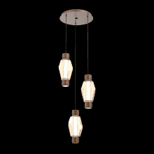 Mandrel Round 3pc Multi-Pendant - Gem-Gilded Brass-Bronze Blown Glass-Cloth Braided Cord-LED - 3000K