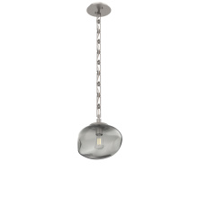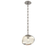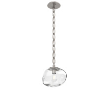 The Nebula Nova Pendant features a softly undulant 10”W oval shade in artisan blown crystal glass with an E26 base that takes one 40W bulb.