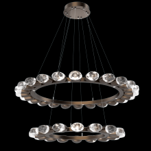 Pebble DoubleRing 36" & 48" Small Glass-Gunmetal-Pebble Clear-Stainless Cable-LED 2700K