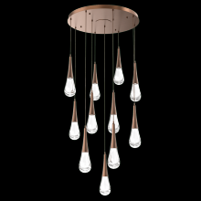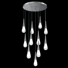 Raindrop Multi - Port 11 PC. - Matte Black - Clear Blown Glass - Cloth Braided Cord - LED - 3000K