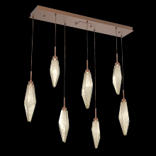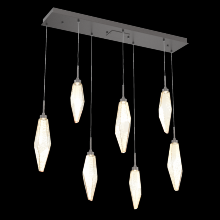 Rock Crystal Linear Multi - Port - Matte Black - Chilled Blown Glass - Bronze - Cloth Braided Cord - LED - 2700K