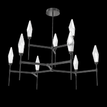 Rock Crystal Round Chandelier - 54 - Matte Black - Chilled Blown Glass - Smoke - Threaded Rod (24,12 (2x),6,3) - LED - 2700K