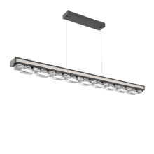 The 2,500-year old art of glass mosaic tiling is brilliantly brought to light in the modern-styled Tessera Linear Chandelier. Choose from five tile motifs in artisan cast crystal glass, two wood-inspired accent motifs, and several finishes. Tessera fixtures are illuminated with 93 CRI integrated LED and are available in 2700K or 3000K color temperature.