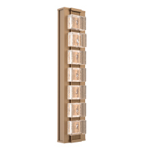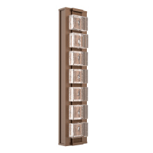 The 2,500-year old art of glass mosaic tiling is brilliantly brought to light in the modern-styled Tessera Sconce. Choose from five tile motifs in artisan cast crystal glass, two wood-inspired accent motifs, and several finishes. Tessera fixtures are illuminated with 93 CRI integrated LED and are available in 2700K or 3000K color temperature.