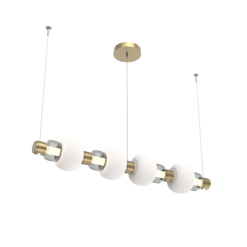 The Torno Mandrel Linear Chandelier honors a material used in lighting for centuries while introducing a modern, elevated spin. Its raw, unglazed finish creates a naturally casual aesthetic and an expression of warmth and understated sophistication.
