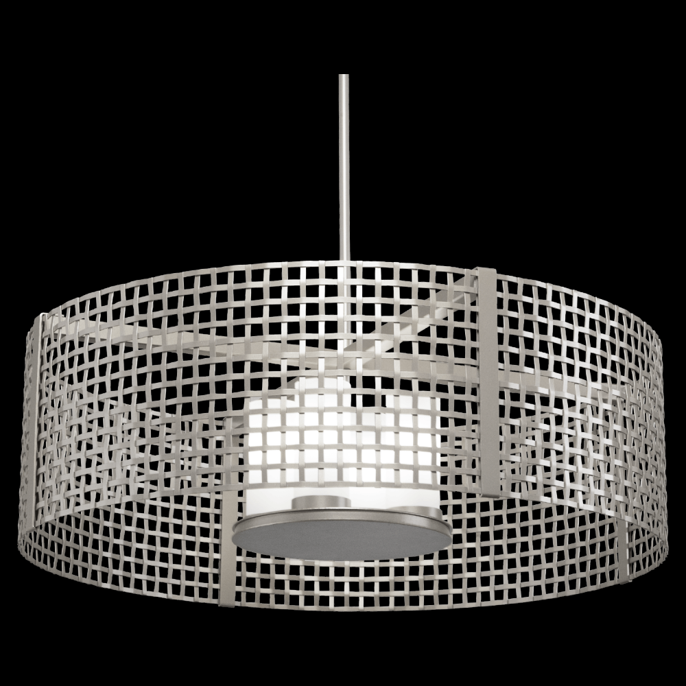 Tweed Drum - 36 - Metallic Beige Silver - Frosted Glass - Threaded Rod (24,12 (2x),6,3) - Incandescent E26 Socket