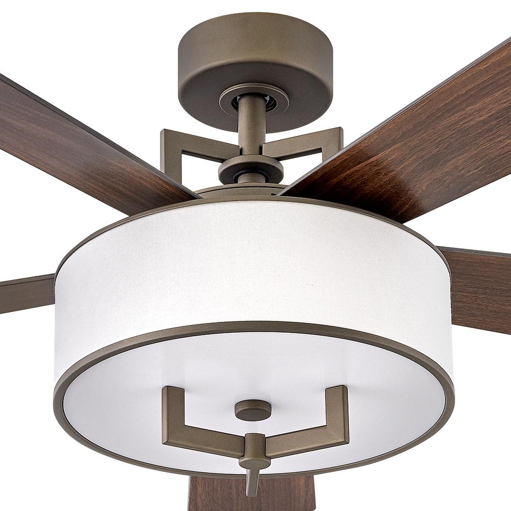 Hampton is a modern transitional design, offering the ultimate in urban sophistication. The minimal, rectangular frame, paired with a decorative acrylic etched bottom lens and sleek blades, is softened by a contemporary off-white linen drum shade. Available in Metallic Matte Bronze with Walnut or Metallic Matte Bronze blades, Brushed Nickel with Walnut or Silver blades, and Heritage Brass with Birch or Matte White blades, Hampton is perfect for any interior decor.