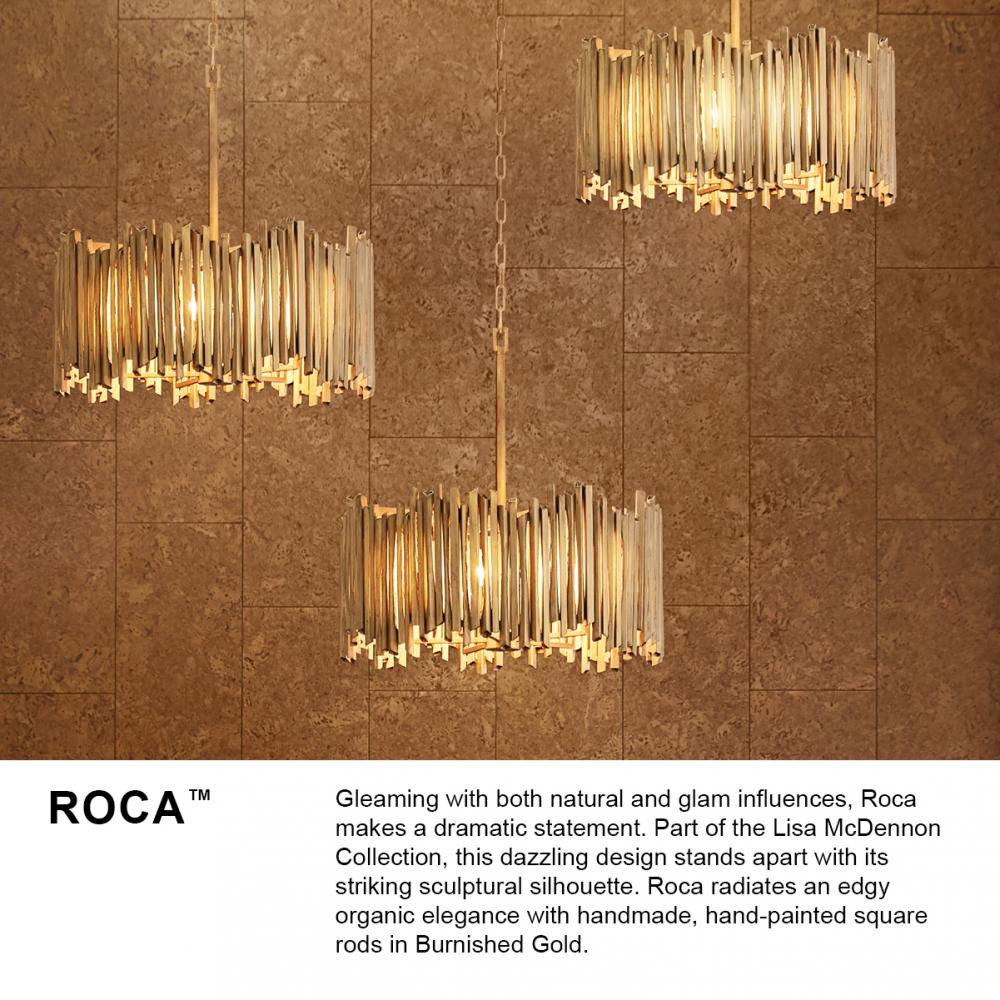 Gleaming with both natural and glam influences, Roca makes a dramatic statement. Part of the Lisa McDennon Collection, this dazzling design stands apart with its striking sculptural silhouette. Roca radiates an edgy organic elegance with handmade, hand-painted square rods in Burnished Gold.
