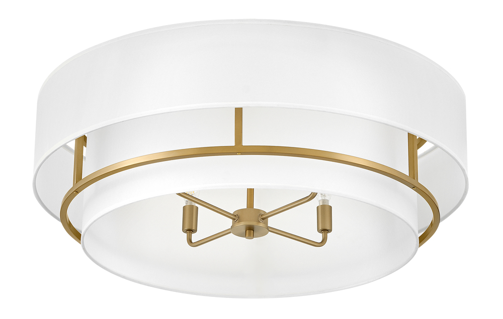 Handsome Graham is understated elegance, crafted with unique details making it the ultimate transitional semi-flush mount. Its welded frame is nestled between two off-white shades, in luminous faux parchment with a finished cluster visible from below. Graham is available in multiple finish options.