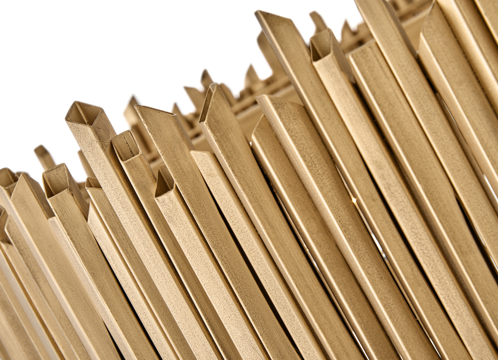 Gleaming with both natural and glam influences, Roca makes a dramatic statement. Part of the Lisa McDennon Collection, this dazzling design stands apart with its striking sculptural silhouette. Roca radiates an edgy organic elegance with handmade, hand-painted square rods in Burnished Gold.