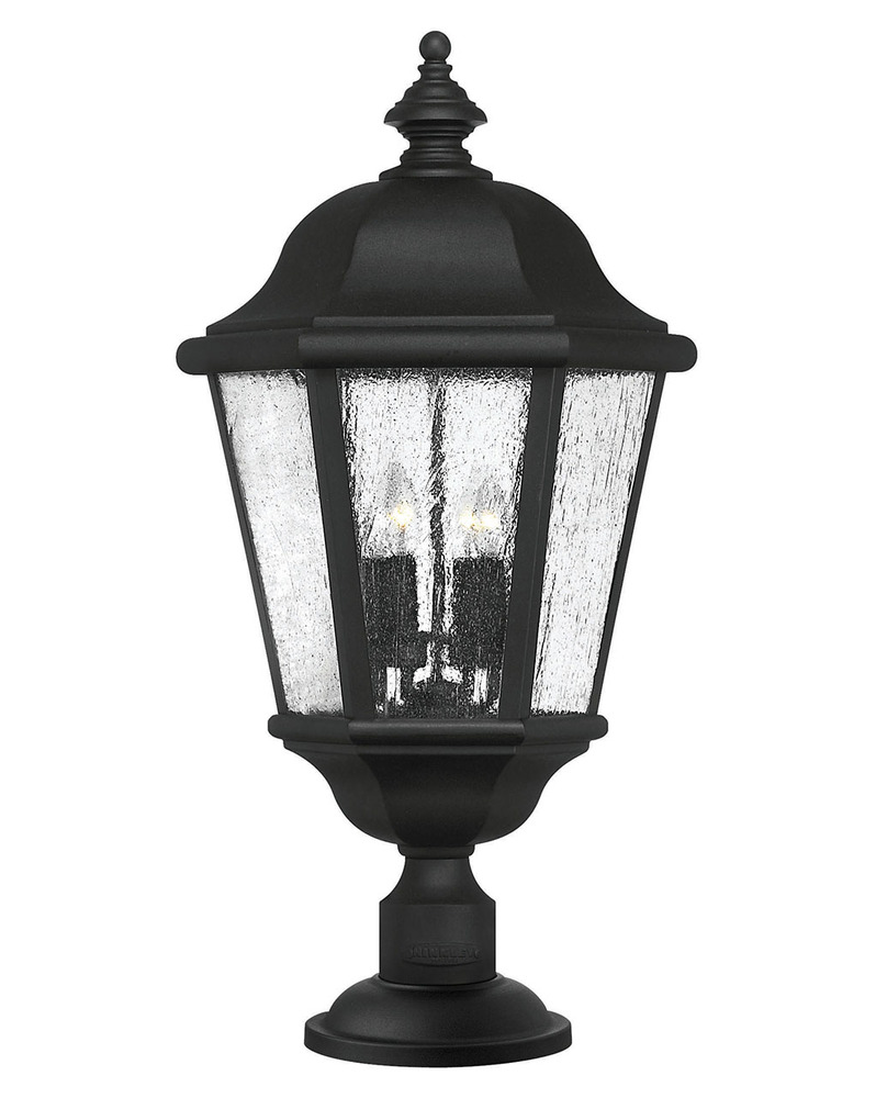 Edgewater’s classic design features a durable cast aluminum and brass construction in a rich Black finish with clear seedy glass.