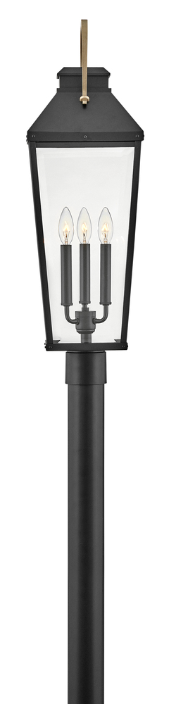 Dawson flaunts a versatile design with flair. A slightly tapered silhouette reveals simple lines that seamlessly frame clear beveled glass. Constructed of durable aluminum in Black, Dawson is complete with an oversized arching handle in a contrasting Burnished Bronze finish, reinforcing its transitional appeal.