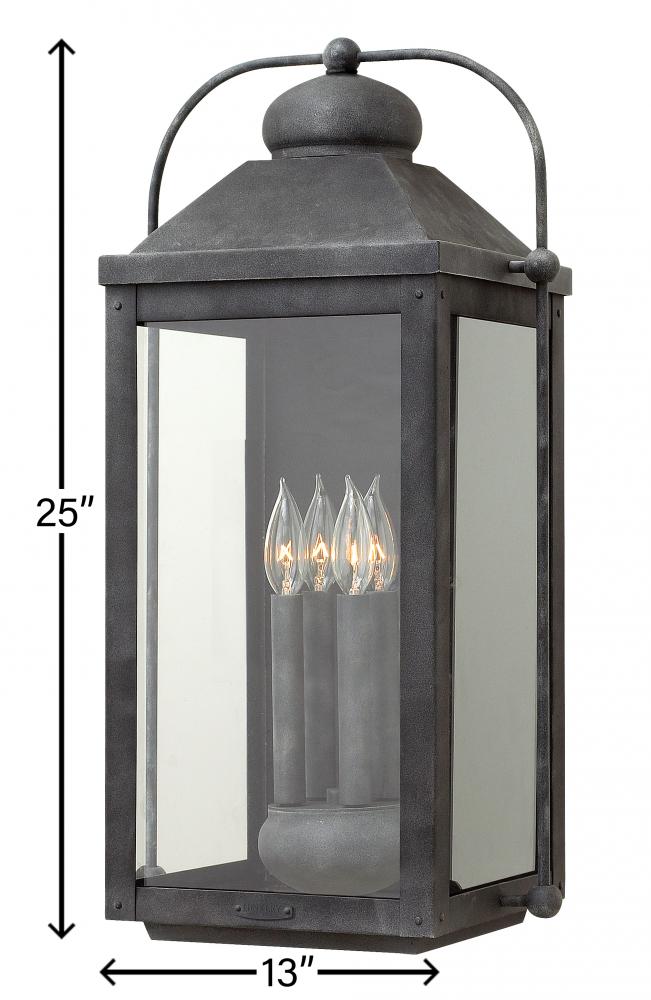 Anchorage is an early American lantern design crafted of solid aluminum to reflect a bold yet refined silhouette. The Aged Zinc or Light Oiled Bronze finish and clear glass complement the long clean lines, elegant arched carriage handle and sturdy knobs, resulting in a vintage style with classic charisma.