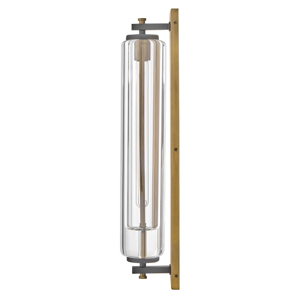 Solid and robust, Lourde’s name says it all. Heavy, layered glass cast in soft cylindrical shapes creates captivating reflections and refractions to illuminate any outdoor or indoor space with a warm glow. The modern, industrial details paired with the Black and Heritage Brass finishes make a bold statement among any aesthetic.