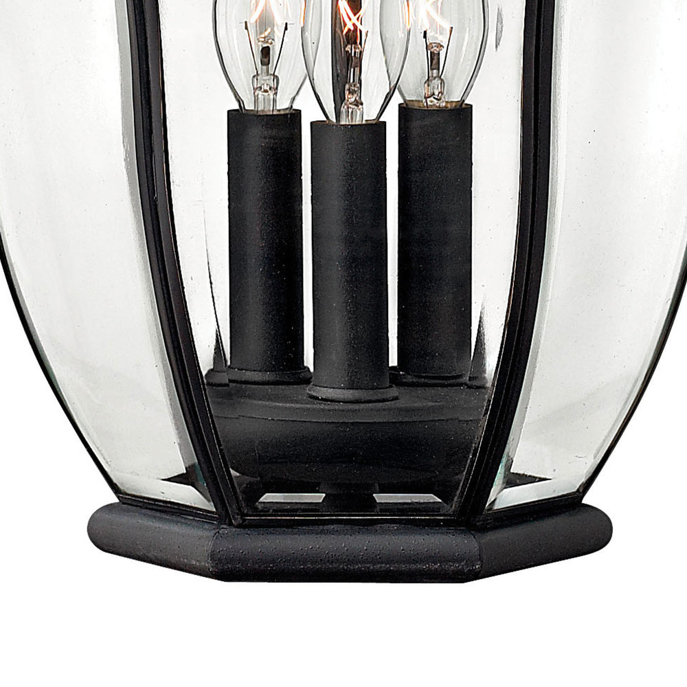 San Clemente’s elegant shape takes center stage with clear bent, beveled and bound glass as the central design element. Its cast aluminum and brass construction complemented by exquisite cast ornamental detailing completes its captivating appeal.