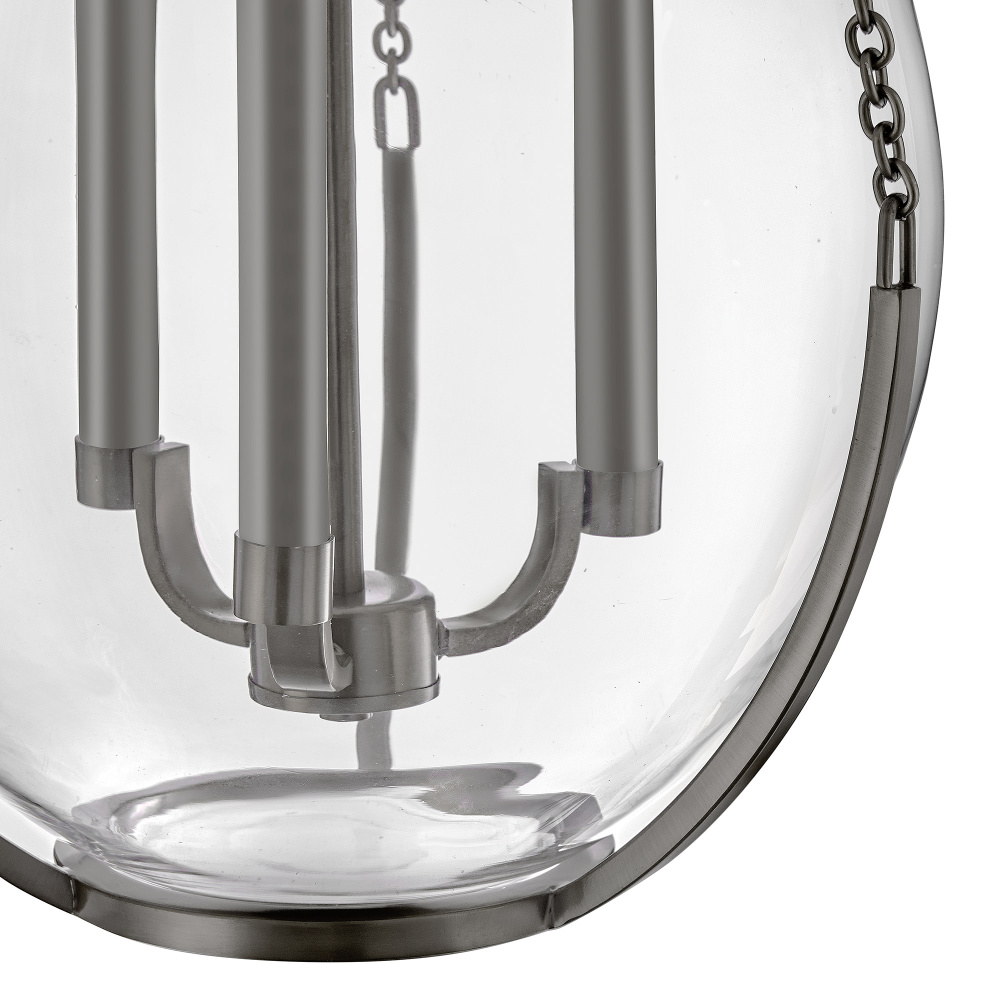 Distinguished by its substantial teardrop silhouette and large, Clear glass shade suspended from decorative chains, Farrin’s traditional styling brings sophistication to your living or dining space. A central cluster of brilliant candelabra lamps is accented by a three-armed frame and matching candle sleeves in a Lacquered Brass or dark Gunmetal finish.