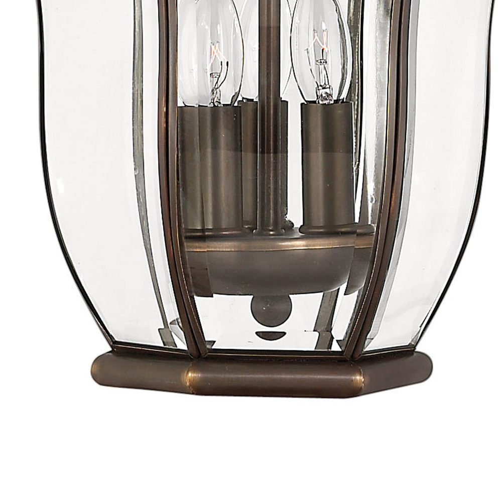 San Clemente’s elegant shape takes center stage with clear bent, beveled and bound glass as the central design element. Its cast aluminum and brass construction complemented by exquisite cast ornamental detailing completes its captivating appeal.