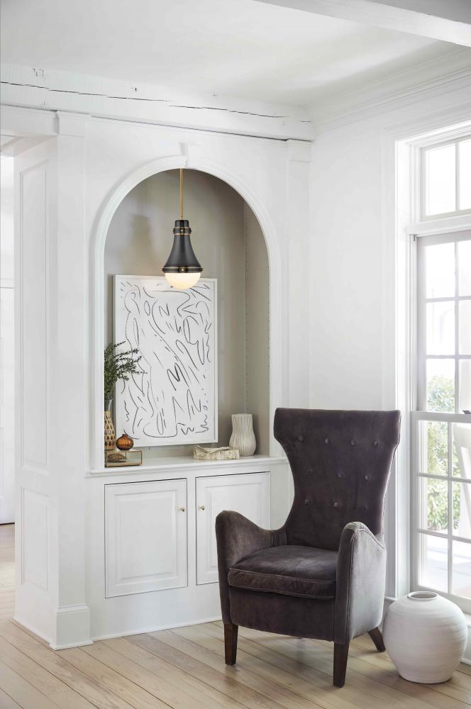 Oliver features an eye-catching sleek spun metal shade and etched opal glass shade beneath. Sleek metal bands and knobs add interest and reinforce its modern-meets-traditional style. Oliver is available in a robust lineup of finish combinations.