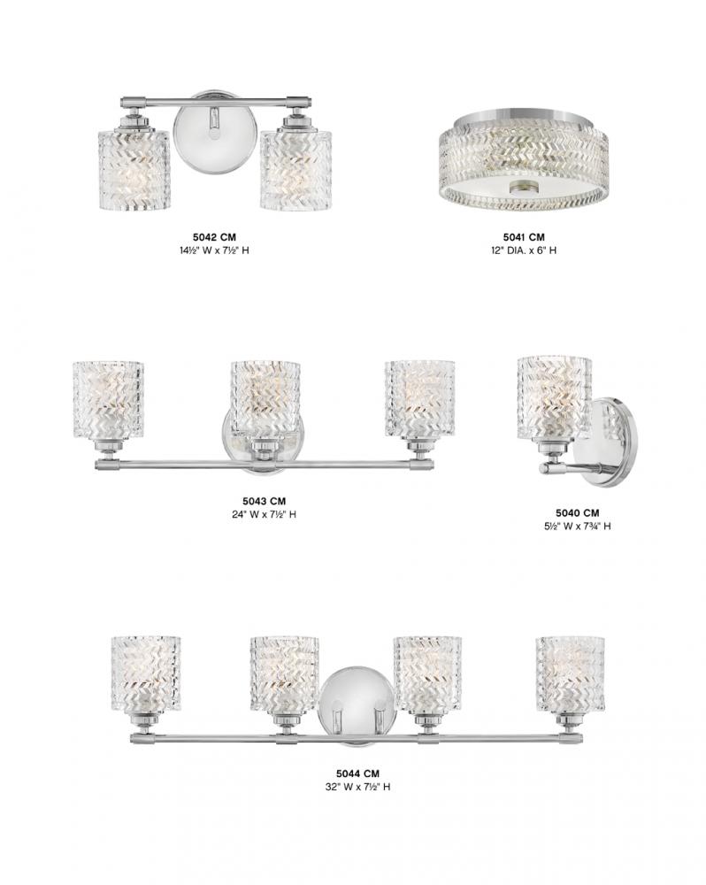 Traditional elegance with a modern edge defines Elle’s graceful design. Rich chevron cut glass provides interesting light refraction and is a dramatic focal point whether the light is on or off. The gleaming metal finish adds to the glam design that gives a touch of radiance to any space.