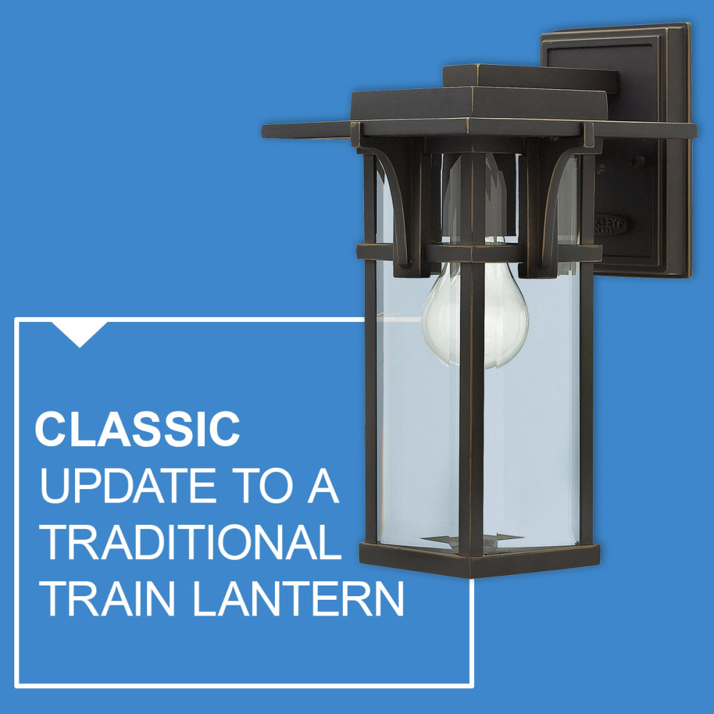 Manhattan is a classic update to the traditional train station lantern. The hand-painted Oil Rubbed Bronze finish complements the clean lines of its durable die-cast construction.