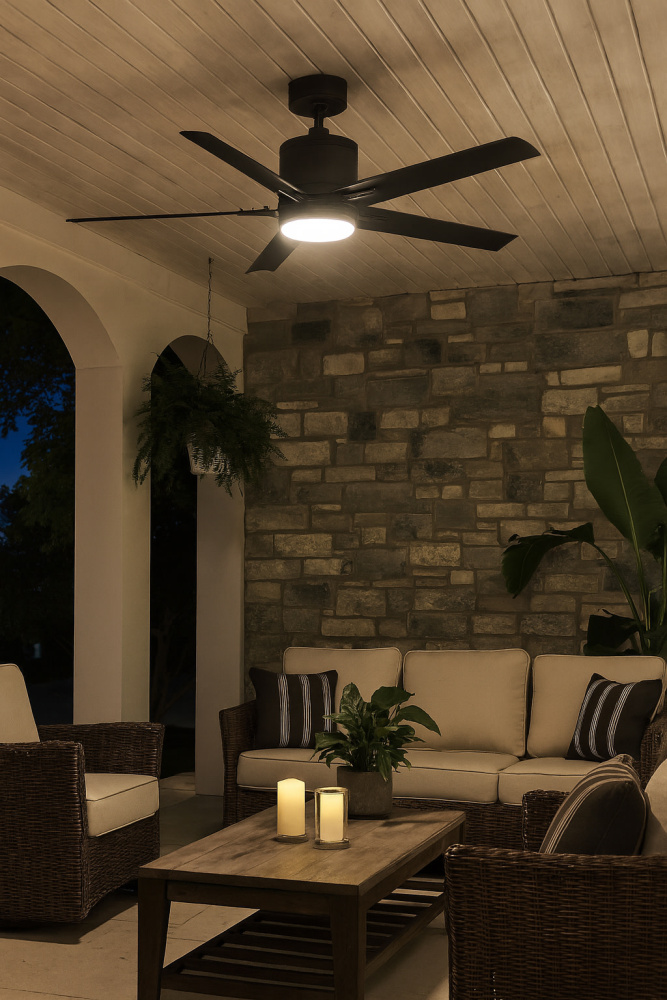 As a smaller companion to Vantage, Vail offers a transitional design with gently curved blades and an array of finish options, while its integrated LED lighting and DC motor technology deliver excellent energy efficiency. Vail is so versatile; it can be used for both indoor and outdoor spaces. Blades are included with every fan.