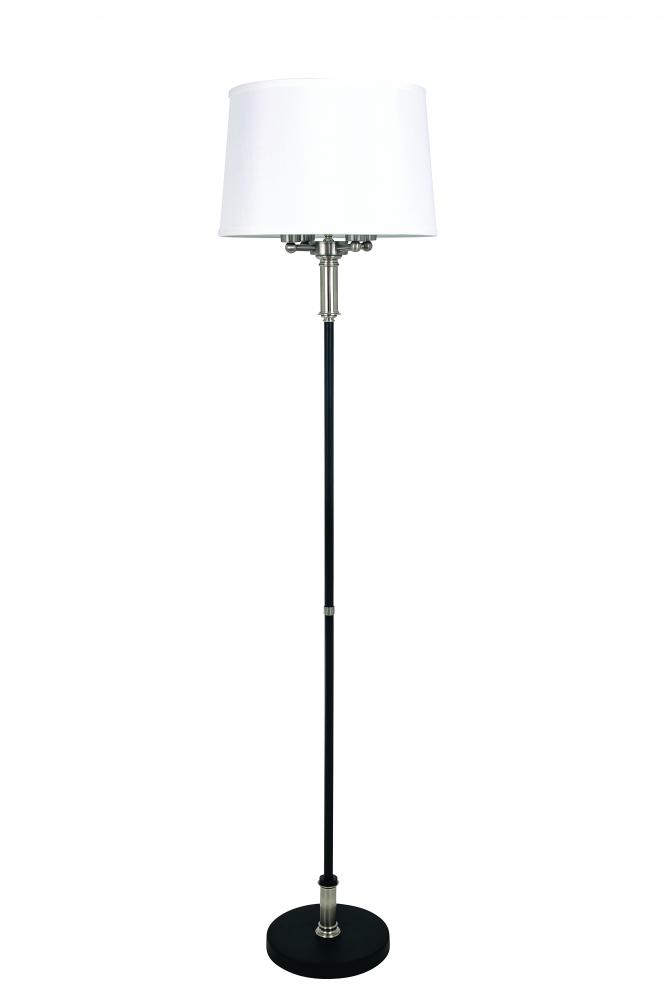 Alpine 4 light cluster black/satin nickel floor lamp with white silk softback shade