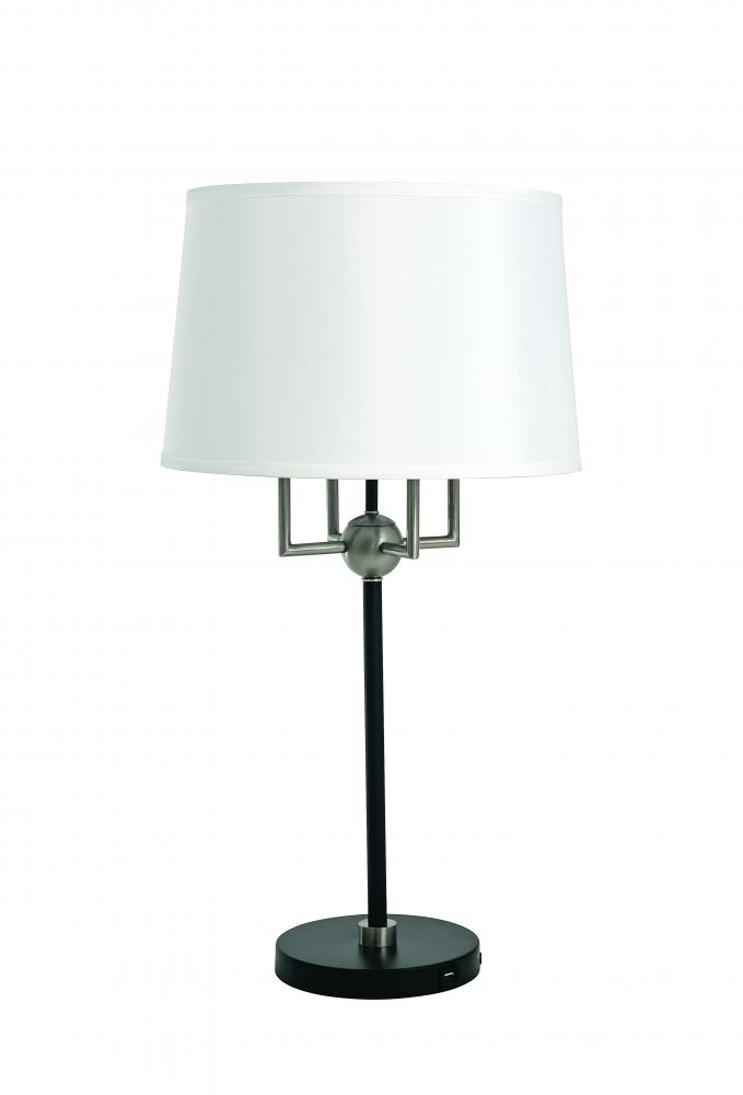 Alpine 4 light cluster black/satin nickel table lamp with white silk softback shade