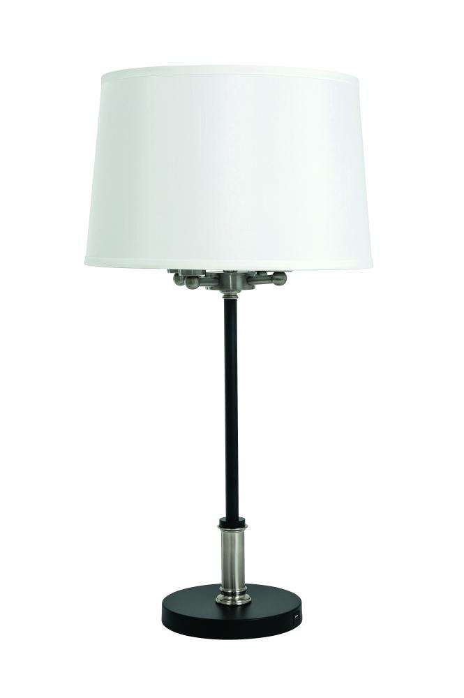 Alpine 4 light cluster black/satin nickel table lamp with white silk softback shade