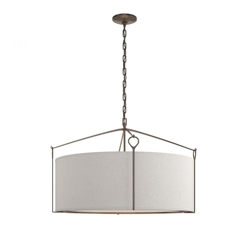 Clean lines and generous light output—this Large Bow Pendant has simple lines and with the versatility for a variety of settings and styles. Classic hook and loop details suspend the shade, while a lightly curved bottom glass diffuser softly disperses the light. Standard and Tall sizes also available.