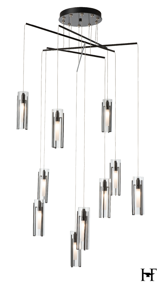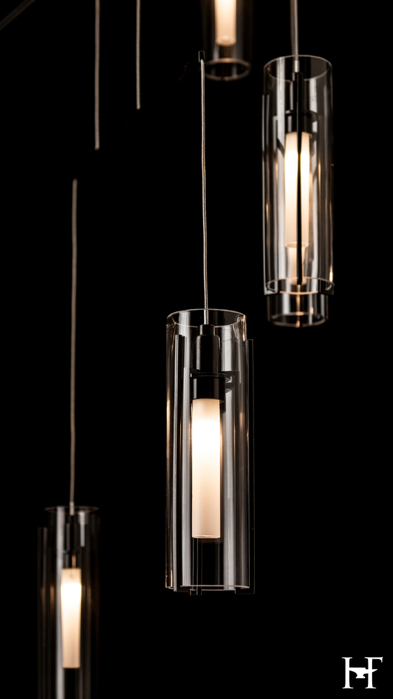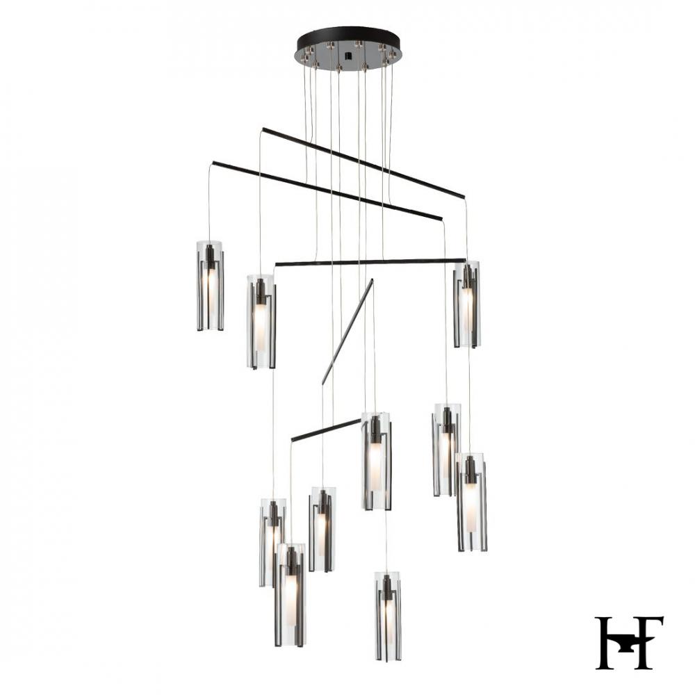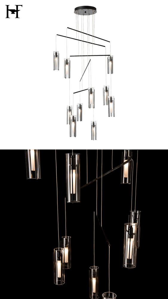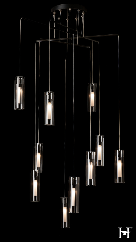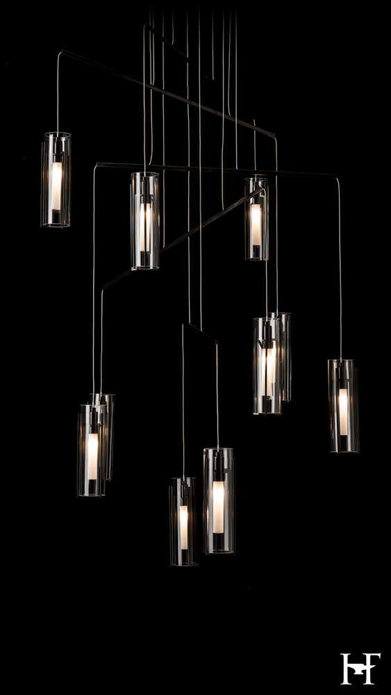 The Exos Collection is known for its classic designs. With the Exos 10-Light Mobile, it takes a contemporary path with a minimized canopy and delicate metal tubes that guide cables to allow for a highly-adjustable, customized fixture. Ten tall glass shades are each held by three handcrafted vertical metal pieces that secure the glass. A beautiful balance of art and light, this Exos spreads a stunning illumination in any space.
