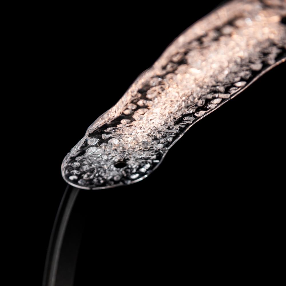 Inspiration for the Glissade struck designer Andy Morter as he was walking across an icy midwestern pond. “[The jagged edges of the ice] were unlike anything else I’d seen in nature. There’s something raw and beautiful in that contrast—sharp yet serene, delicate yet strong.” With its gracefully curved steel arm and base dimmer, this table lamp does double work as both a decorative and task light.