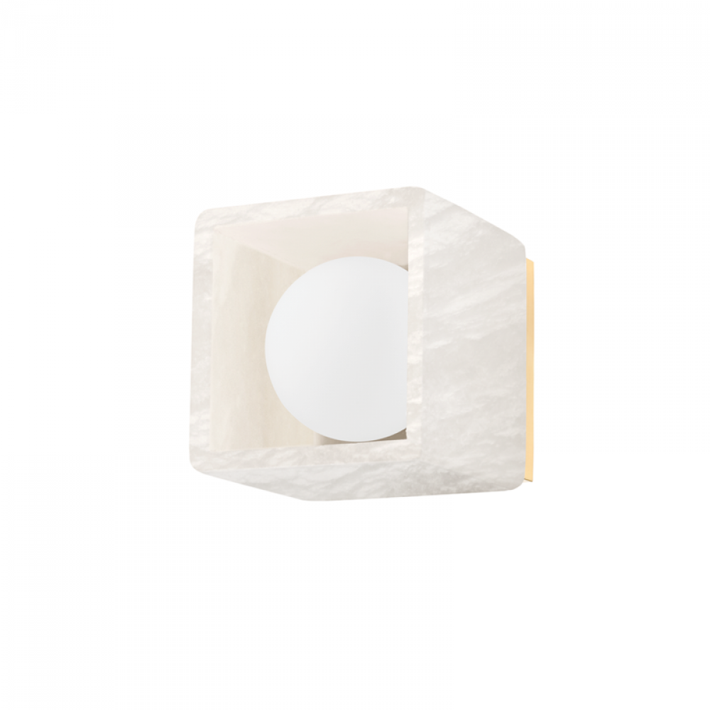 Budnick meets at the intersection of natural and modern, blending forms and materials with steady ease. The juxtaposition of round and square, aged brass and alabaster is the type of material mastery we have come to love. Available as a 1-light, 3-light, and 5-light wall fixture, the real beauty comes from the warm ambient glow which emanates from every angle of the alabaster shell.