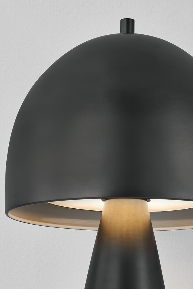 The contrast between the oblong domed shade and the conical base of Hopkinton creates a striking geometric design. Whether this petite lamp is finished in Aged Brass or Distressed Bronze, the on-trend mushroom silhouette adds a dose of personality. Its integrated rechargeable LED light source ensures lasting functionality.