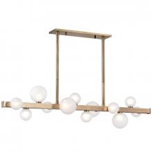 Playful and minimal, orbs of light cluster around a square metal beam as if some unseen magnetism were at work. Hand-blown glass spheres are finely etched inside while maintaining a clear glossy sheen on the outside. The result is a pleasing diffusion of light. Hinsdale exhibits sophistication and confidence.