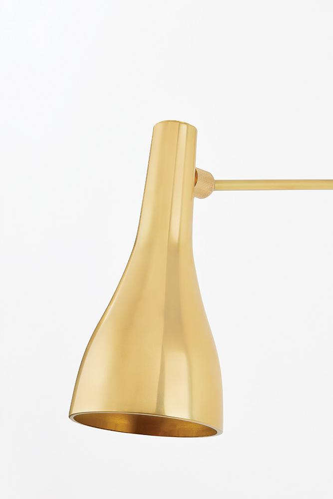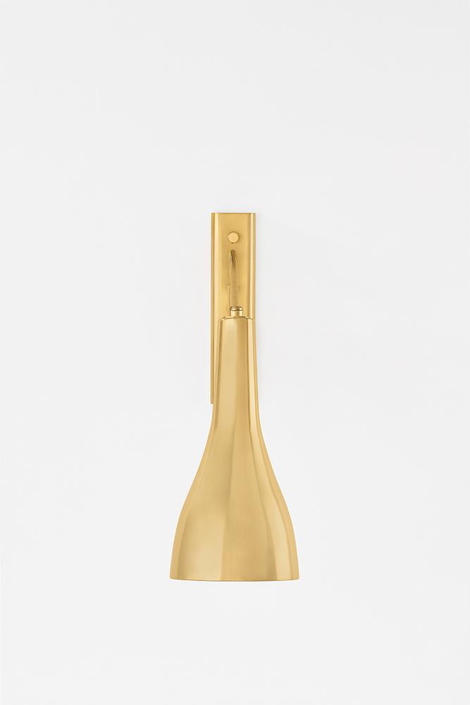Inspired by mid-century design aesthetics, Northford features a playful triangular arm and bell-shaped shade. The narrow backplate includes a dimmer switch that allows for precise adjustments in brightness. This fixture is perfect as a reading light above a sofa or lounge chair, or anywhere adjustable task lighting is required.